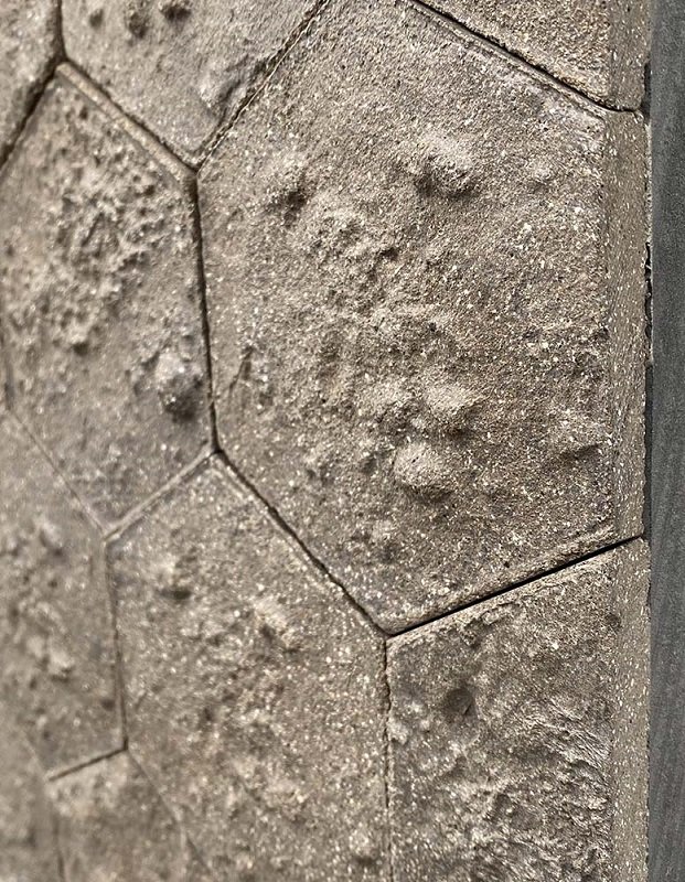 The product is manufactured using reclaimed soil and other reclaimed materials and compressed under high pressure into panels. They are biodegradable and recyclable. As with any natural material, variations from panel to panel and piece to piece are to be expected and this is what gives the product its natural aesthetic and charm. A control sample is merely a representation of the final product.