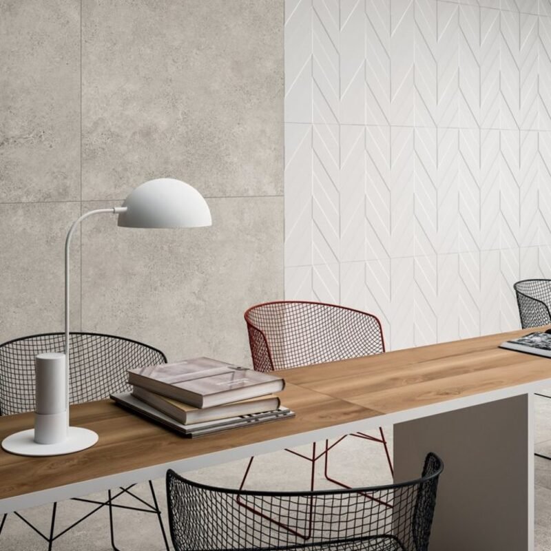 This 3D style tiles collection includes fine white body and glazed porcelain wall tile with a modern three-dimensional look. In both the White and Deep Blue versions, the Natural and geometric decorations of 4D give shape, refinement and character to any room. Despite the aesthetic impact being rather bold, these wall tiles with their 3D patterns combine perfectly with different materials and styles, to give life to original and sophisticated interiors in any residential and commercial project. Three dimensional aesthetic enhance both tactile and visual aspects: surfaces are chalky and matt, while decorations are glossy and metallic, a contrast that blends matt and shiny finishes.