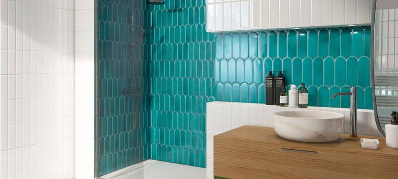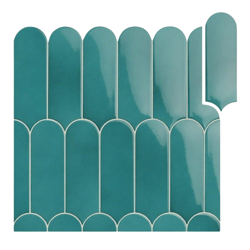 The Fan series scale-shaped tiles are capable of dressing up a room almost by themselves, their stylized scale shape transforms the design of any environment. Combining different colors in the same proposal, the Fan flake tiles give a lot of play in any room.