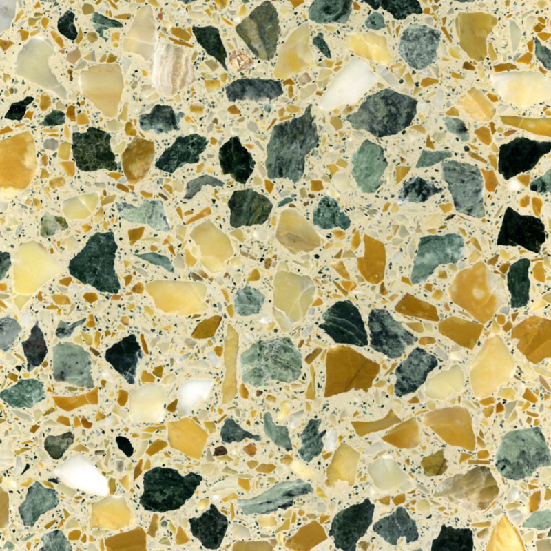 Terrazzo is made by combining a cement base (sand, water, and cement) with a mixture of ground marble minerals and marble chips - and can be applied to almost any surface, vertical or horizontal. The technique, produced using a completely hand-crafted method, was used worldwide in the construction of modern buildings and is noted for its durability, resistance (to water and abrasion), and easy maintenance. Today, terrazzo is experiencing a revival as one of the key trends in contemporary architecture, with the ability to choose bespoke colours and aggregate sizes to create a unique tile.