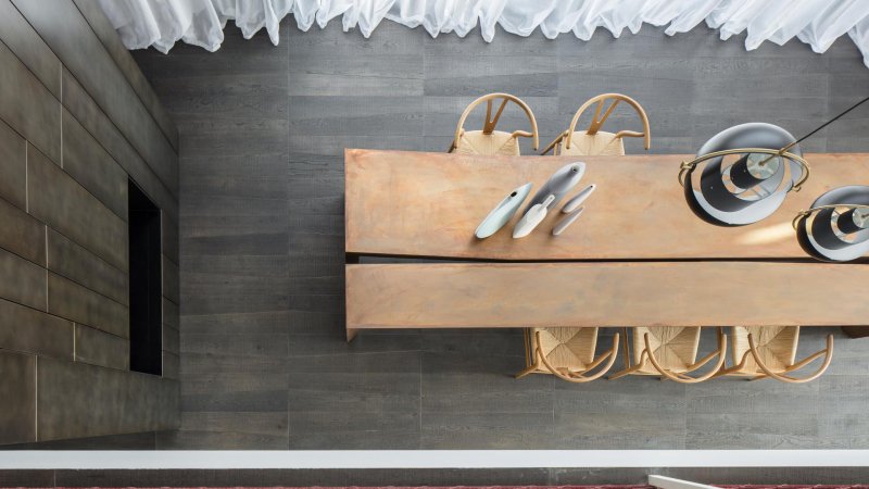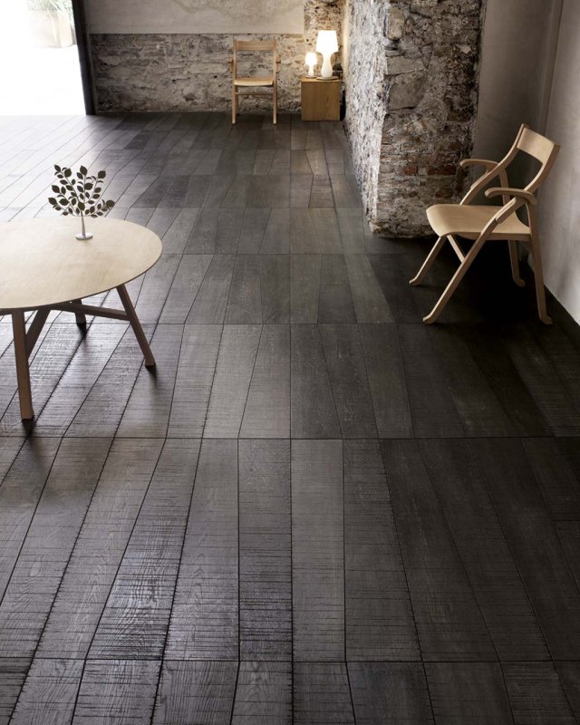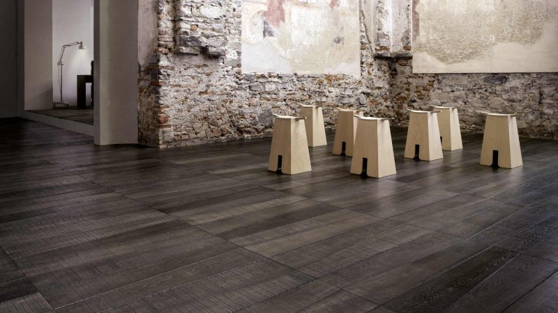 Medoc Natural Genius is wood floor created by Michele De Lucchi and Philippe Nigro. Its original and unmistakable trapezoidal shape draws on the tapered shape of wooden logs. At the same time, Medoc's design creates visual continuity with old planks, "when planks were not straightened so as to avoid wasting wood unnecessarily". The imprecise sawn cut surface (or sawn wood technique) requested by the designers enhances the light effects, the tactile feeling and 3D effect of Listone Giordano's French Oak. The colour shades obtained with natural oil-based treatments give Oak a distressed look by simulating the effects of exposure to the elements.