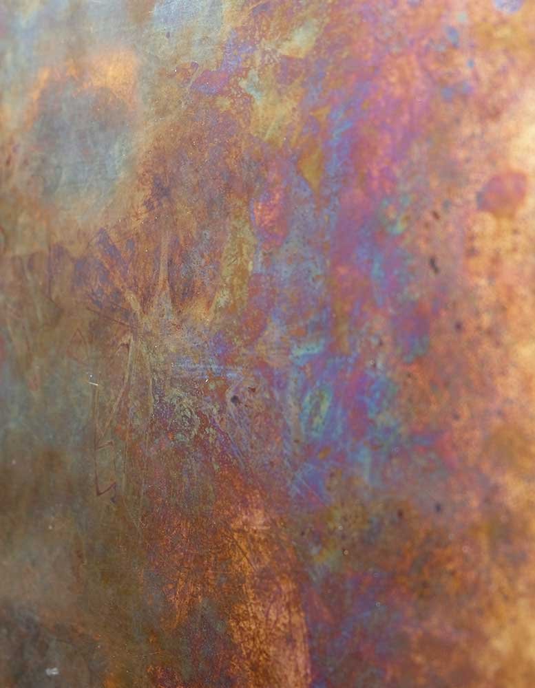 The product is manufactured using patina metal sheets backed on MDF panels. There will be variations from panel to panel and piece to piece - this is completely normal. A control sample is merely a representation of the final product.