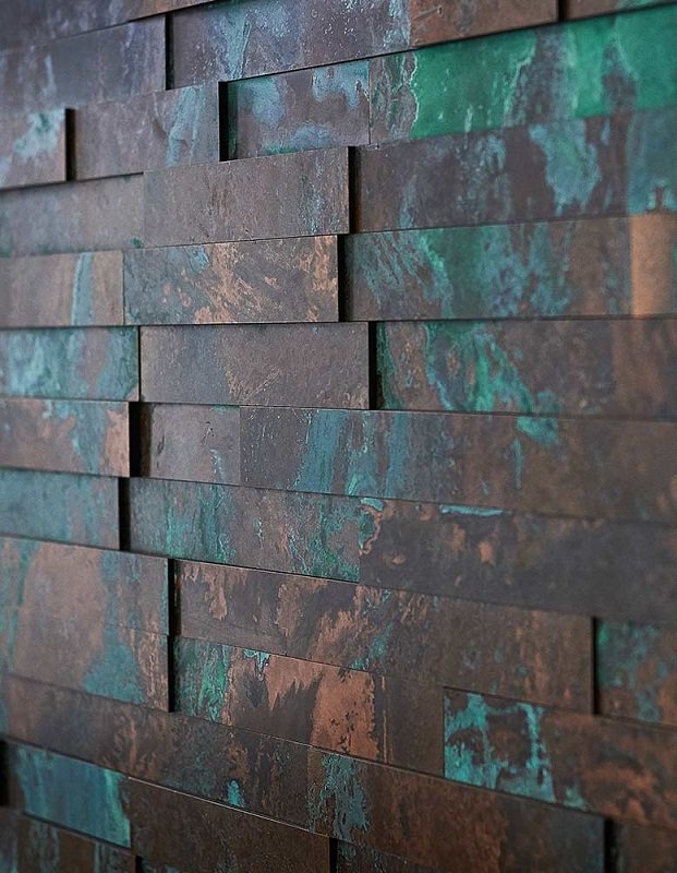 Metal panels are made of real metal on a block of MDF on the support of fiberboard, so it can be processed like ordinary sheet material with normal tools. The metal is processed with different acids, which creates a beautiful play of colours. Metal Panels are interior panels that create a beautiful sparkle on the wall with the correct lighting.