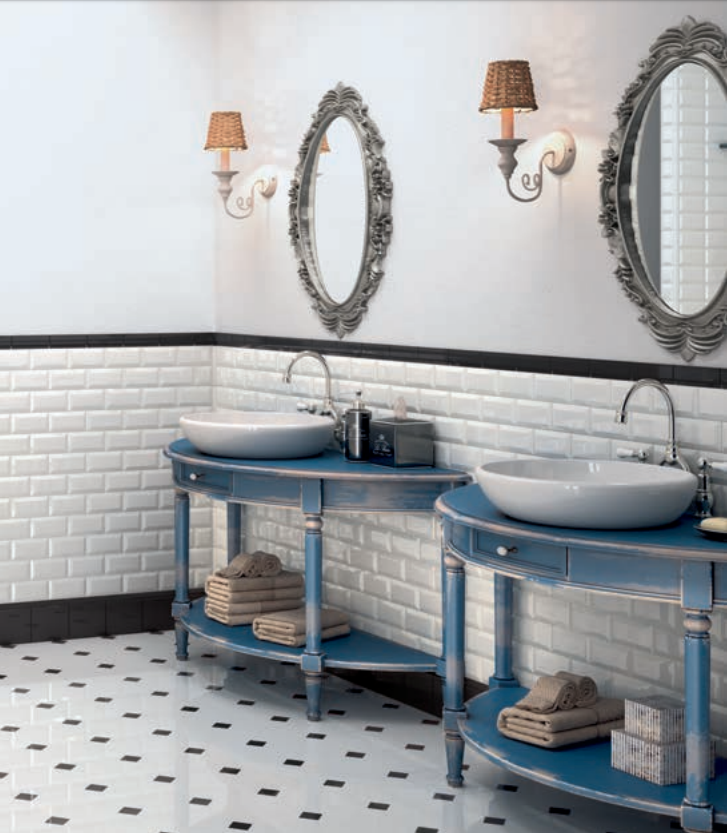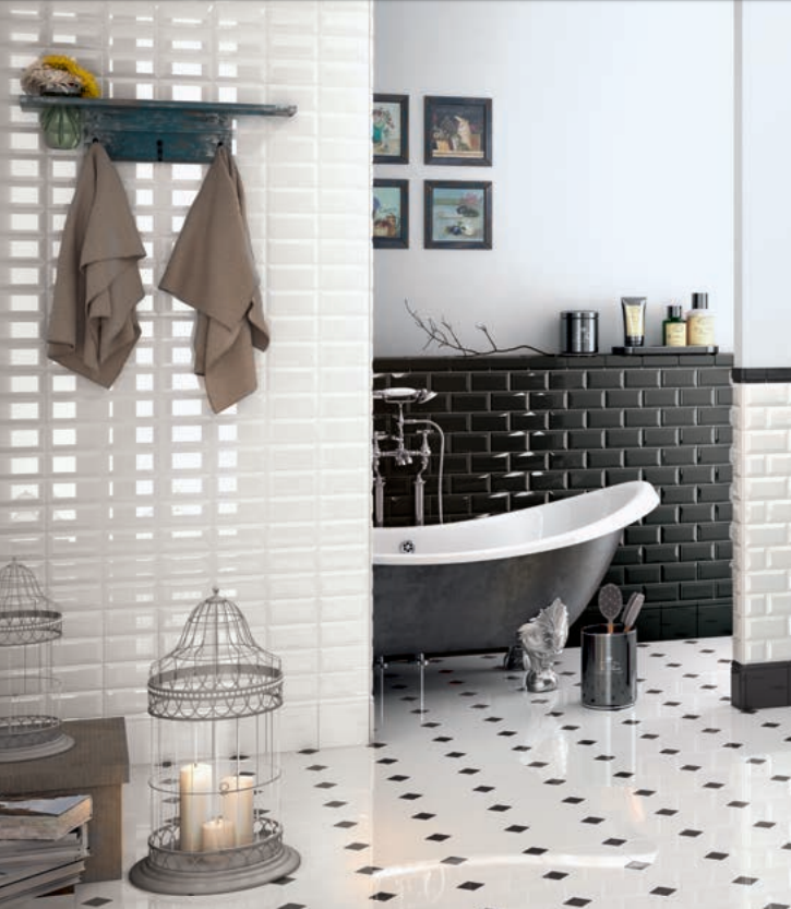 A vintage collection which proposes a typical classic tile being used in Parisian underground stations since last Century. Its three dimensional look is really catching and the cut surface creates light and shade effects under lighting. The traditional colours and the various matching special trims make Metro range suitable both for public and private locations.