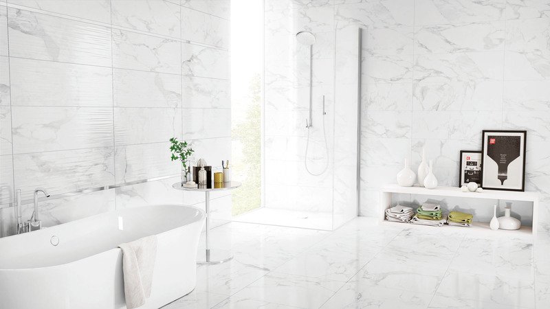 Decorating a space with the Natura Kalacata collection means coexisting daily with the beauty of one of the most noble italian marbles, allowing for elegant and glamourous decoration of refined spaces. Available in two versions, the gold calacatta and the grey calacatta, an ample range of wall tile sizes. The floor tile is offered in a natural, more slip-resistant matt version, and a semi-polished finish for a more sophistictaed shiny effect.