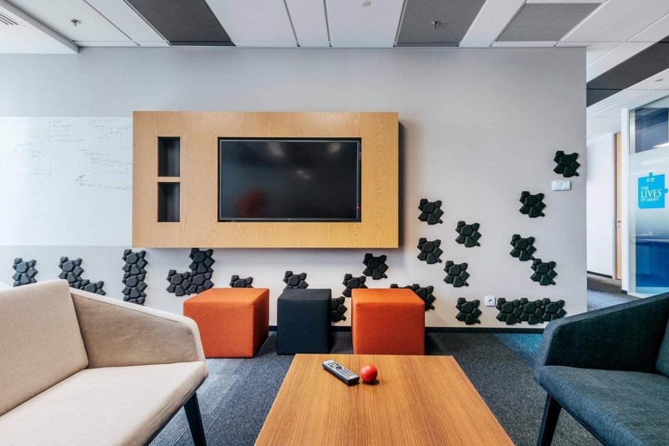 The shape of BEEHIVE results from the union of different geometrical planes that grow in an organic way. It is a progression from a basic honeycomb, at once natural and contemporary. The pattern appears to move, yet it is balanced, giving dynamism, energy, and emotion to the environment.