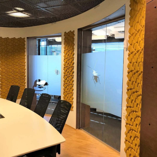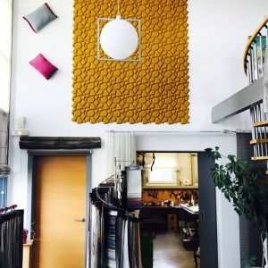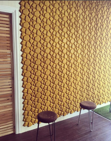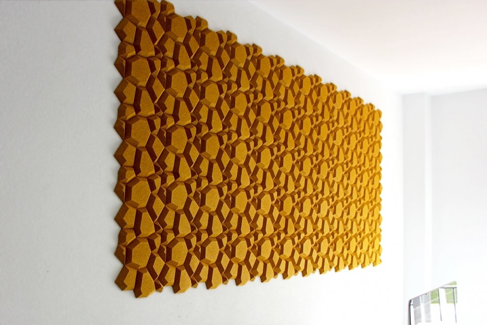 The shape of BEEHIVE results from the union of different geometrical planes that grow in an organic way. It is a progression from a basic honeycomb, at once natural and contemporary. The pattern appears to move, yet it is balanced, giving dynamism, energy, and emotion to the environment.