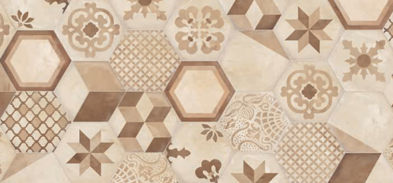 The Terra collection recaptures the taste for decoration making it more contemporary the terracotta-cement look is exalted by the hexagonal form and by the classic 20x20 size of the tile. The 3 warm and 3 cold hues extend across the entire chromatic range to create personalised ambiances that are perfect for every circumstance. The decorations, on the 20x20 as well as the hexagonal tile, extend from the geometrical to the stylised floral motif to create extremely decorative ambiances which, at the same time, are also minimal. The patterns can be mixed, creating an infinite number of combinations.