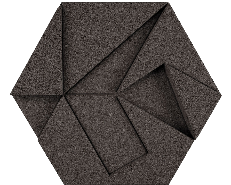 The HEXAGON is one of the geometric shapes that exist in nature, as does our cork material, and it is associated with communication, balance, and union. By creating additional internal shapes, the HEXAGON allows an interface of each and all tiles, creating a unique result.