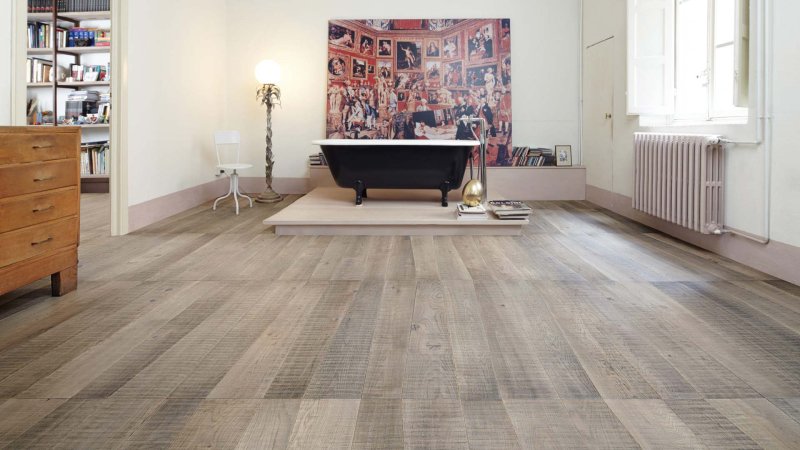 Medoc Natural Genius is wood floor created by Michele De Lucchi and Philippe Nigro. Its original and unmistakable trapezoidal shape draws on the tapered shape of wooden logs. At the same time, Medoc's design creates visual continuity with old planks, "when planks were not straightened so as to avoid wasting wood unnecessarily". The imprecise sawn cut surface (or sawn wood technique) requested by the designers enhances the light effects, the tactile feeling and 3D effect of Listone Giordano's French Oak. The colour shades obtained with natural oil-based treatments give Oak a distressed look by simulating the effects of exposure to the elements.