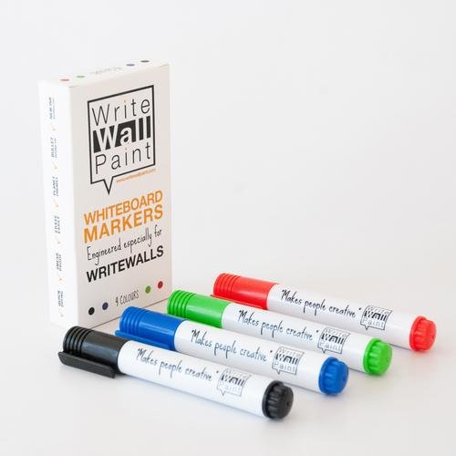 This pack of 4 WriteWallPaint Miracle Markers (Black, Blue, Red & Green) gives you the must have colour palette to express your creativity on all dryerase surfaces. They Work on all whiteboard surface, are easy to erase, contain no toxic substances, has Minimal odor nuisance and have been Specially developed for WriteWallPaint.
